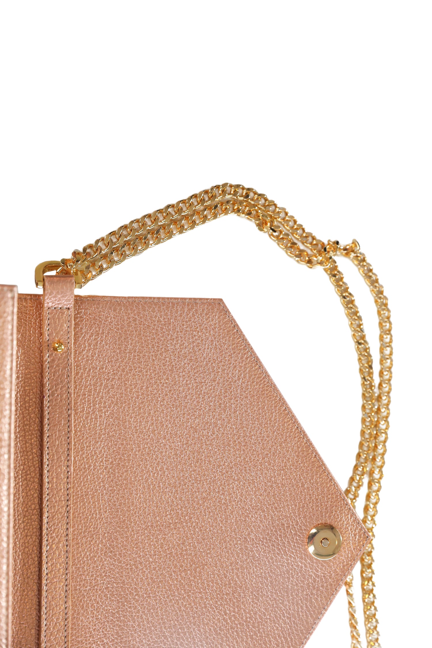 The Victoria is a special medium-sized rectangle handbag made to be worn in a versatile way. The envelope design offers a classic yet sophisticated look with the added golden double chain. Spacious enough to fill all your essentials, the Victoria bag can be styled from day to night and carried as a clutch, shoulder bag, or crossbody bag.
